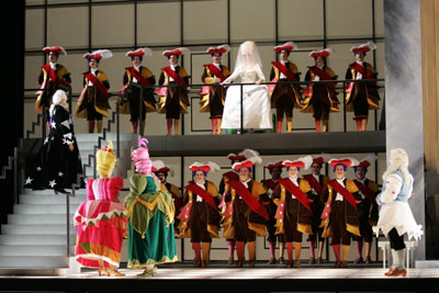 Pues érase una vez…un cuento, mismamente. Un cuento con música de Rossini, alegre, feliz, impertinente. Es una ópera muy divertida, muy fácil de ver, aunque los últimos 20 minutos se me han hecho un poco largos. Silvia Tro (Angelina) ha estado bien, tirando a muy bien, aunque espero oír ese papel cantado aún mejor por Joyce DiDonato. Barry Banks (Don Ramiro), a mi corto entender ha empezado bastante bien, para caer estrepitosamente en la mitad (Zito, zito) y remontar un poco al final. El Juandi le dará 100 vueltas, espero.