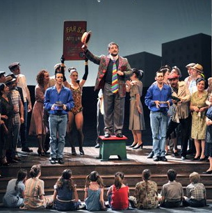 4. Estuve el sábado con el reparto Giordani. Me quedé a cuadros con Liliana Cavani. Su dirección escénica era: entramos todos de golpe en escena, NOS PARAMOS, cantamos, terminamos, nos quedamos inmóviles diez segundos para que el público aplauda y nos vamos todos a la vez. De función de fin de curso, alucinante. Y la orquesta… ¿la dirigía Ray Conniff?