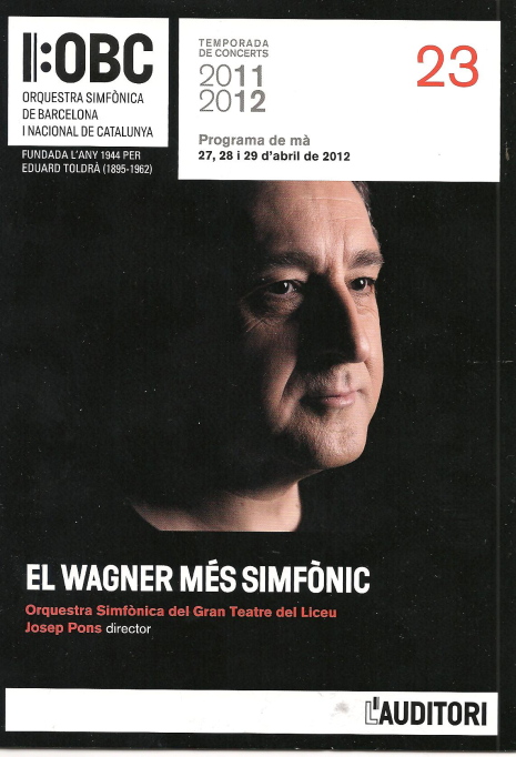 Aprofitant que l’OBC està aquesta setmana en el fossar del Liceu per a les representacions de Die Zauberflöte, el concert núm 23 de la temporada que porta el títol de “El Wagner més simfònic”, té com a protagonista a l’Orquestra del Gran Teatre del Liceu amb Josep Pons, el proper director musical del Teatre, al capdavant.
