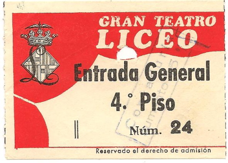 A les tres de la tarda ja estàvem altre cop al carrer Sant Pau ja queentre un quart i dos de quatre obrien la porta de general, l’hora no era mai exacta i calia arribar a les tres no fos cas que obrissin, ja que si no havies arribat perdies la tanda i la cua del matí no havia servit per a res. En qualsevol cas no ho recordo (seria massa que recordes el número que em van donar) però al davant ben bé tenia unes 100 persones, el que vol dir que malgrat que quan obrissin les portes de la sala, després d’una espera de ben bé una hora dins l’escala, asseguts en els esglaons i fent-la petar amb els del davant i al darrere per passar l’estona, i comencéssim a córrer desesperadament escales amunt per agafar el millor lloc possible de quart o cinquè pis, el més probable és que les butaques que quedessin lliures ja no tinguessin cap tipus de visibilitat i que tinguéssim que veure l’òpera drets i abraonats sobre el buit amb els braços estirats i recolzats sobre el sostre per tal de veure el que succeïa en escena. Recordo perfectament que va ser així, que tan sols vaig seure en els entreactes i que l’excitació d’aquella representació vaig trigar a pair-la.