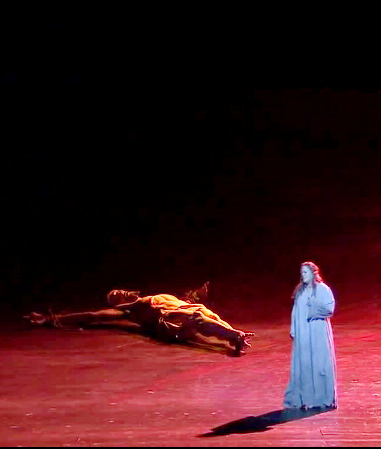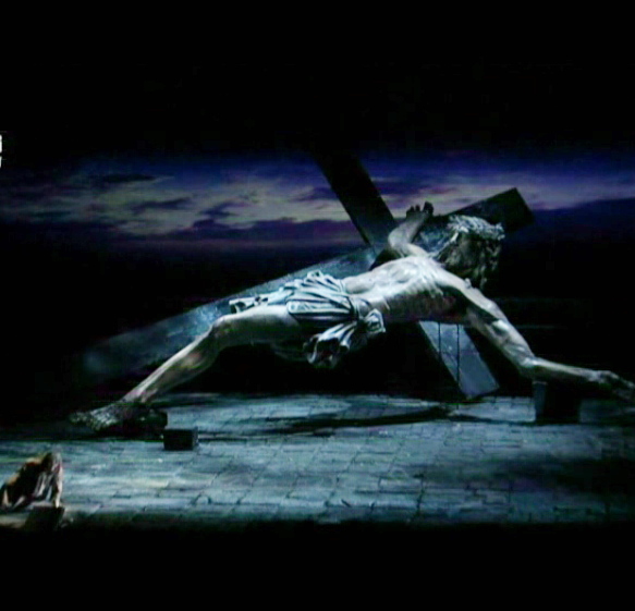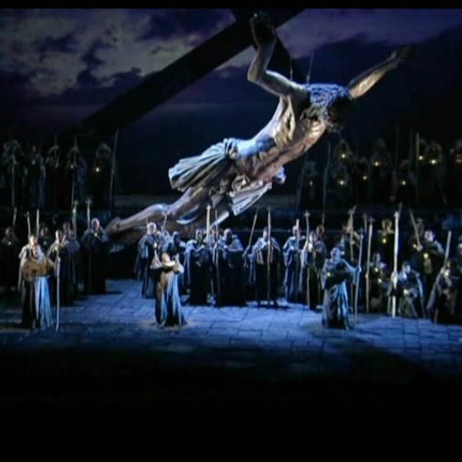 De manera curiosa us adonareu que en el darrer acte i en l’escena segona, aquella que el llibret situa en una grota d’una vall, tant Hugo de Ana com Jean-Claude Avray, responsables escènics de les produccions utilitzant un Crist enorme estirata terra, molt curiós. Qui ha copiat a qui?