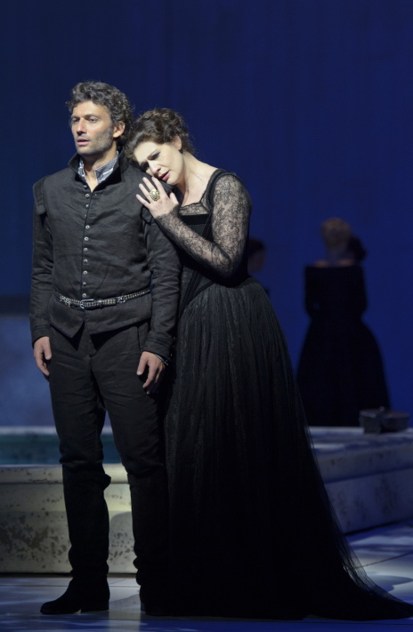 Kaufmann i Harteros al primer acte de Don Carlo, producció de Peter Stein per a Salzburg 2013. Foto Monika Rittershaus