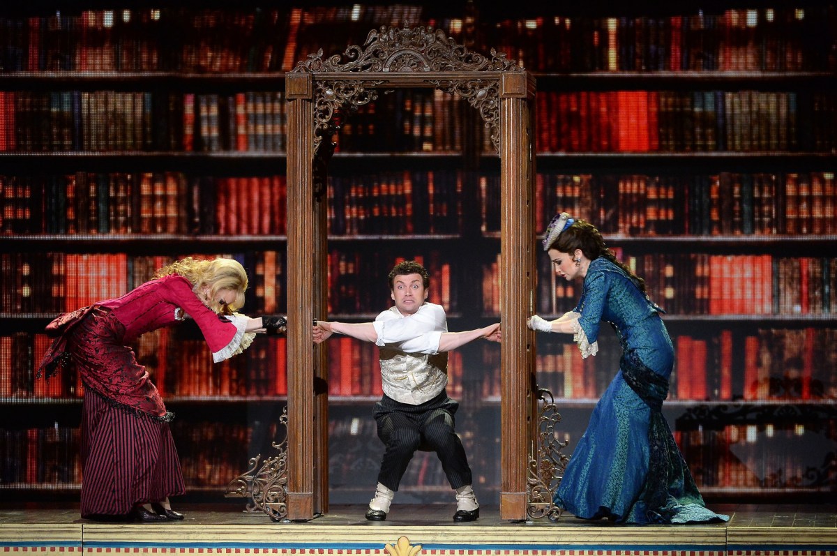 NEW YORK, NY – JUNE 08: Lisa O’Hare, Bryce Pinkham and Lauren Worsham of ‘A Gentleman’s Guide To Love and Murder’ perform onstage during the 68th Annual Tony Awards at Radio City Music Hall on June 8, 2014 in New York City. (Photo by Theo Wargo/Getty Images for Tony Awards Productions) ** OUTS – ELSENT, FPG – OUTS * NM, PH, VA if sourced by CT, LA or MoD **