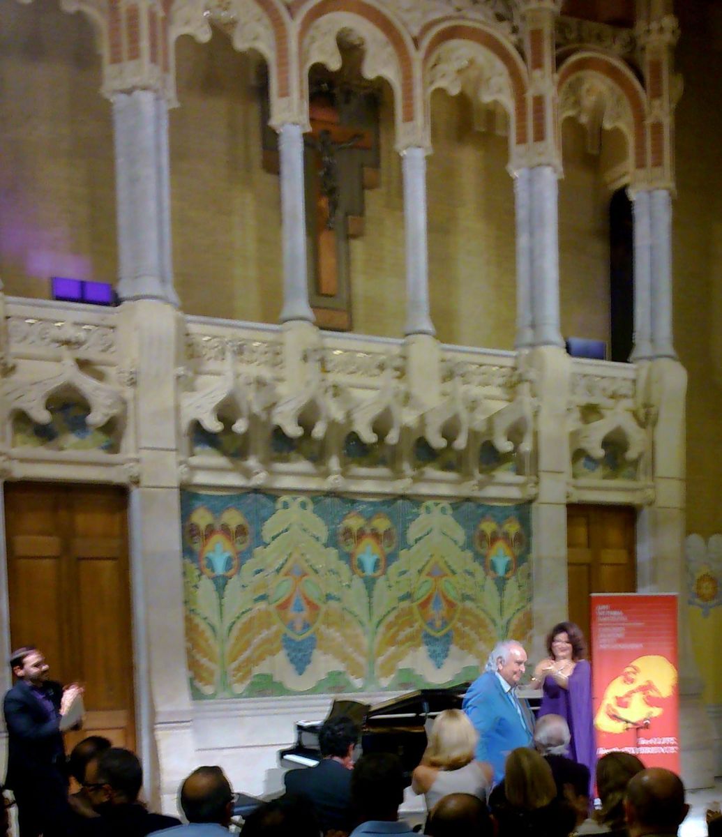 Rubén Fernández Aguiire, Antón García Abril i Nancy Fabiola Herrera al LIFE VICTORIA del 8 d’octubre de 2014 a la sala Lluís Domènech i Montaner Foto IFL