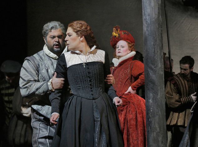 Celso Albelo (Roberto), Sondra Radvanovsky (Maria Stuarda) i Elza van den Heever (Elisabetta) Foto Ken Howard/Metropolitan Opera