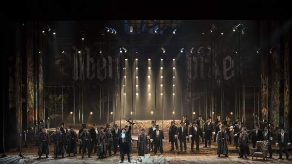 La producció escènica de Gabriele Lavia, no s’entén però el llibret original més val no entendre’l. És una producció que no molesta, ubicada en un únic espai escènic, monòton fins l’avorriment, que sembla una nau industrial abandonada i decorada per amb grafits d’okupes que mai veurem, brillantment il·luminada, amb un vestuari inclassificable i eficaç mentre no surt una fauna carnestoltesca que encara és l’hora que hagi de saber que hi fan allà dins. Una butaca orellera atrotinada que servirà tant a Francesco com a Amalia per jeure i una passarel·la de fusta que travessa mig escenari és la resta d’elements escenogràfics que embolcallen un espai que després de veure tantes bajanades escèniques com hem vist, ens acaba semblant fins i tot tradicional.