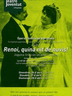 Categories: sarsuela catalana • Tags: Artur Arranz, Òpera Còmica de Barcelona, Dani Arcos, Isa Moren, Jaume Costa, Jordi Mas, Mariona Pallach, Marta Casals, Rafel Aragonès, Renoi quina nit de nuvis! Joan Molas i Casas, Rosa Maria Cañameras, Urbà Fandó i Rais, Viviana Salisi